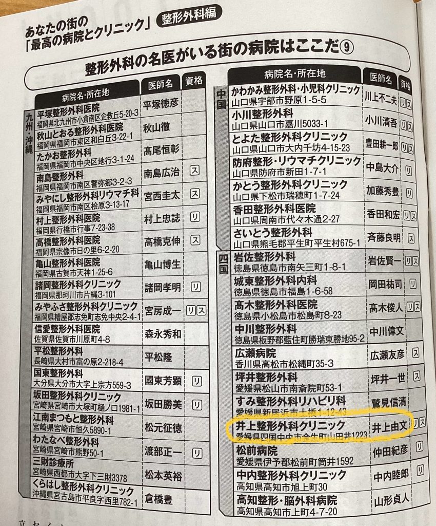 週刊現代のあなたの街の「最高の病院とクリニック」 整形外科編 にて、当院が掲載されました。